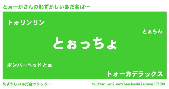 | 意味不明あだ名 | 『とぉーかフォーエバー』『自称とぉーか』 |