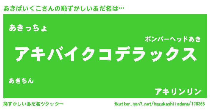 | 意味不明あだ名 | 『自称あきばいくこ』 |