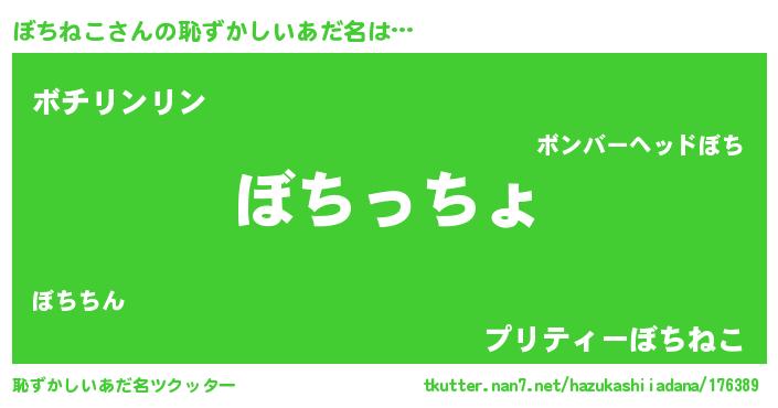 | ヒーロー風カッコイイあだ名 | 『ウルトラぼちねこマン』『魔戒騎士ボチ』 |