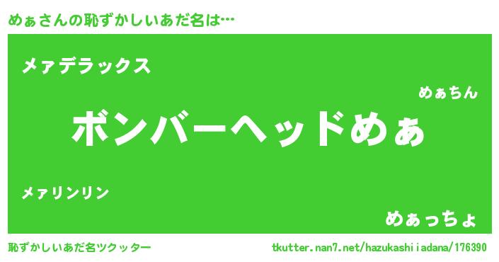 | ヒーロー風カッコイイあだ名 | 『正義の使者めぁ』『仮面メァダー』 |