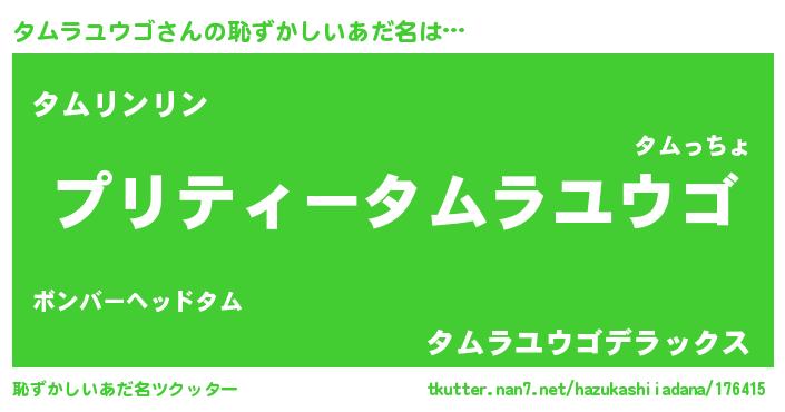 | ヒーロー風カッコイイあだ名 | 『スーパータムラユウゴ』『炎刃騎士タム』 |