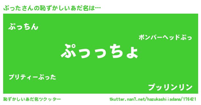 | 意味不明あだ名 | 『ぷったフォーエバー』『永久保存ぷった』 |