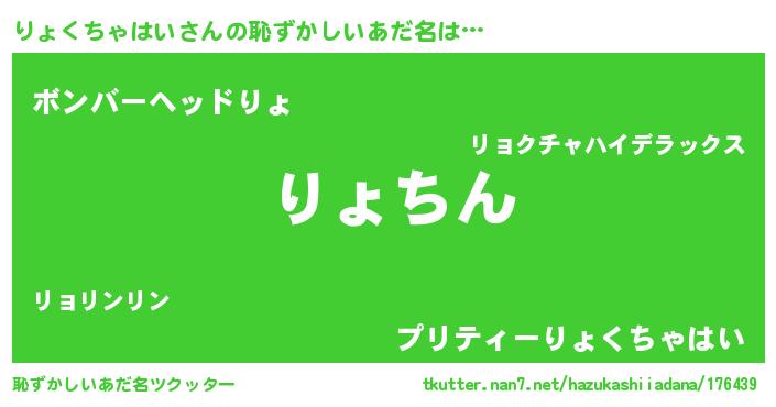 | ヘコむあだ名 | 『りょくちゃはい(笑)』『りょふぇ~』 |