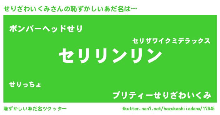 | 意味不明あだ名 | 『とにかく怪しいせりざわいくみ』 |