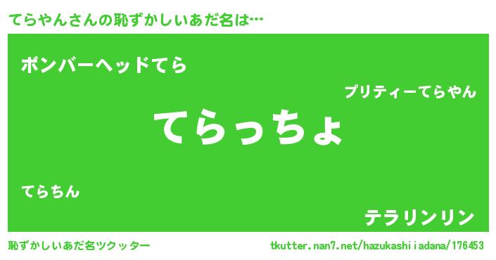 | ヒーロー風カッコイイあだ名 | 『ウルトラてらやんマン』『天弓騎士テラ』 |