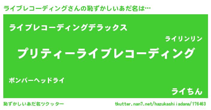 | 男性向けラノベタイトル風あだ名 | 『ライブレコーディングスレイヤー』 |