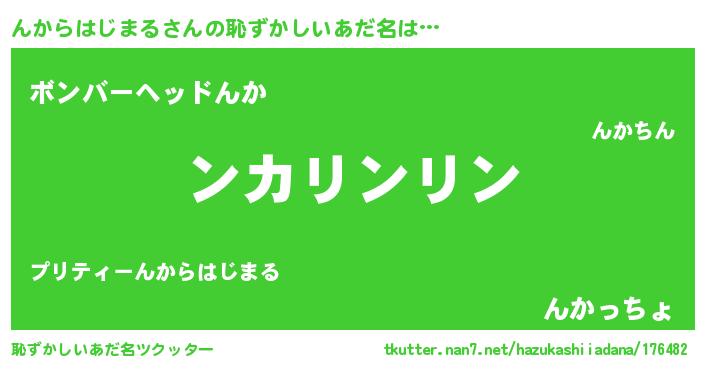 | 男性向けラノベタイトル風あだ名 | 『んからはじまるの嫁は女の子じゃないと思った?』 |