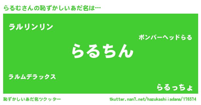 | ヘコむあだ名 | 『らるむ(遠い目)』『らるお』 |