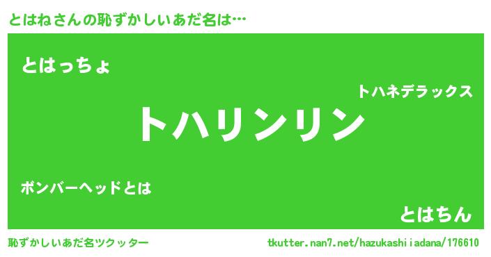 | 可愛いあだ名 | 『とはぷりん』『ぽよとは』 |