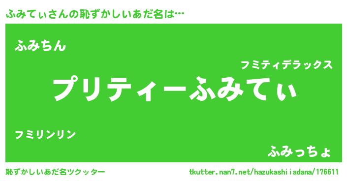 | ヘコむあだ名 | 『ふみにー』『ふみてぃ(小並感)』 |