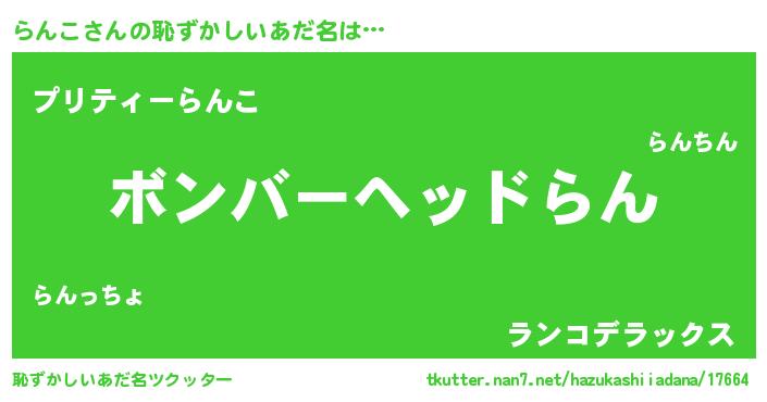 | ヒーロー風カッコイイあだ名 | 『仮面ランダー』『友情の使者らんこ』 |