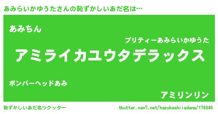 | ヘコむあだ名 | 『あみらいかゆうた(苦笑)』『あみを』 |