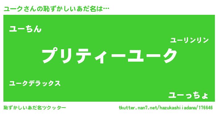 | 意味不明あだ名 | 『ペロリンユーク』『永久保存ユーク』 |