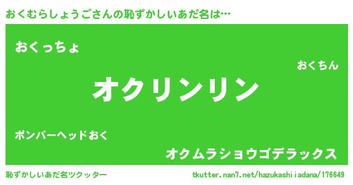 | 意味不明あだ名 | 『とにかく怪しいおくむらしょうご』 |