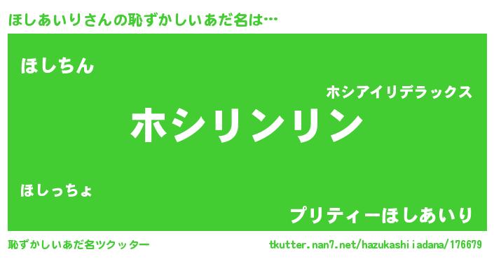 | 意味不明あだ名 | 『とにかく怪しいほしあいり』 |