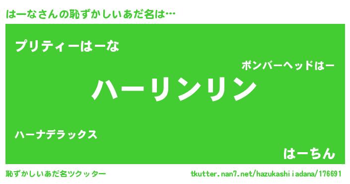 | ヘコむあだ名 | 『はーを』『はーにー』『はーな(笑)』 |
