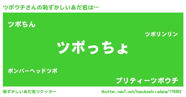 | 意味不明あだ名 | 『ツボウチフォーエバー』 |