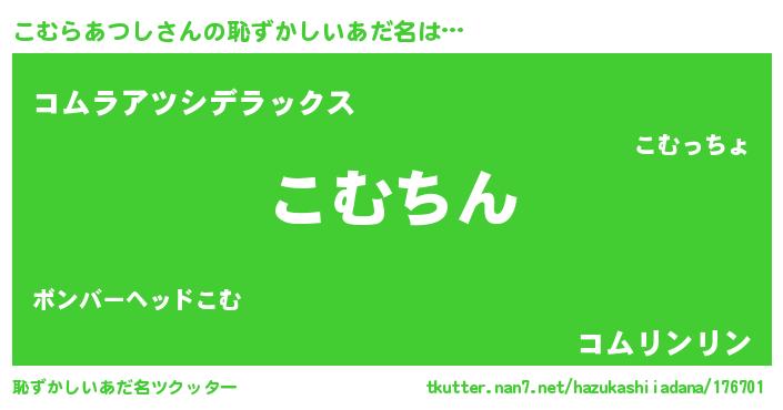 | 可愛いあだ名 | 『こむらあつしママ』『こむうちぇる』 |