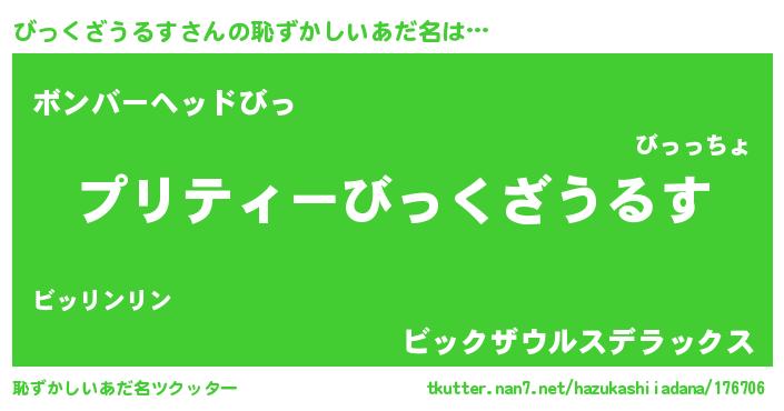 | 男性向けラノベタイトル風あだ名 | 『びっくざうるすの憂鬱』 |