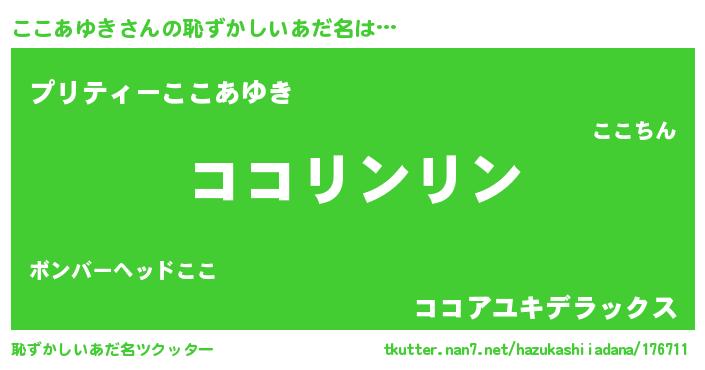 | 意味不明あだ名 | 『とにかく怪しいここあゆき』 |