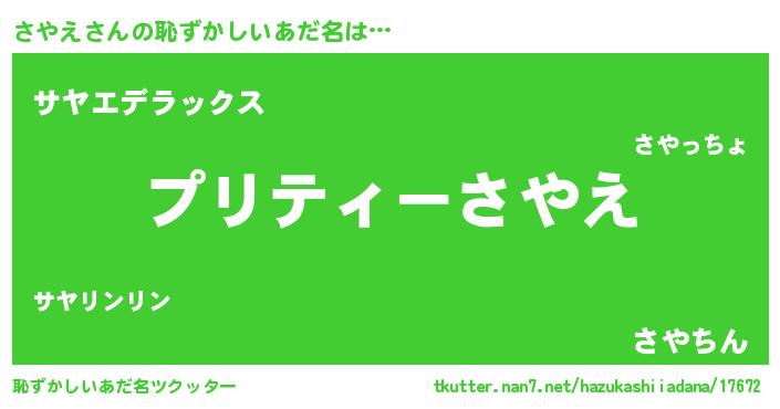 | ポケモン風あだ名 | 『サヤチュウ』『サヤセウス』 |