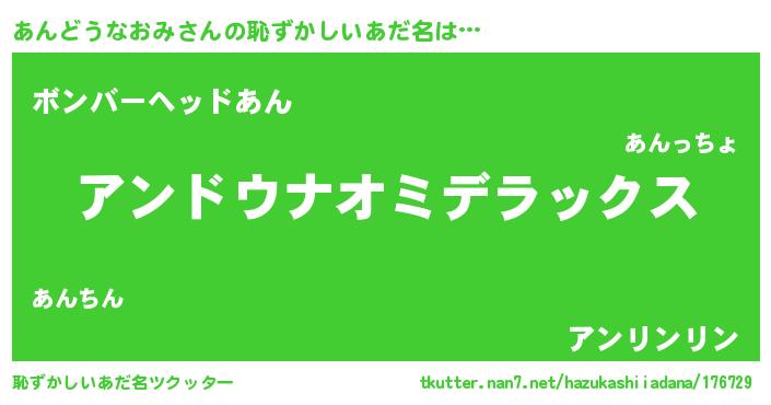 | 意味不明あだ名 | 『自称あんどうなおみ』 |