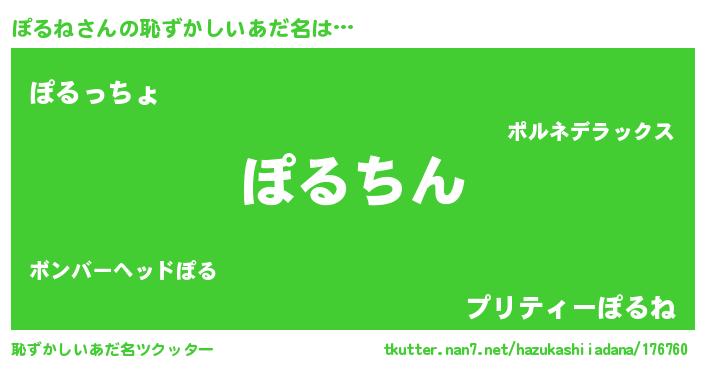 | 意味不明あだ名 | 『永久保存ぽるね』『ぽるねフォーエバー』 |