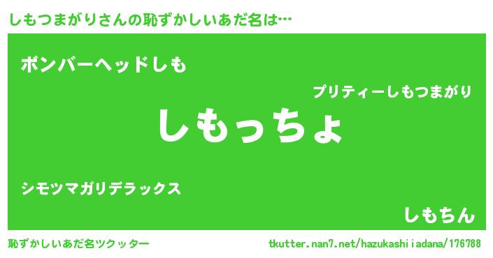 | 意味不明あだ名 | 『しもつまがりフォーエバー』 |