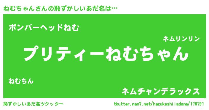 | ヘコむあだ名 | 『ねむにゅー』『ねむっ子』 |