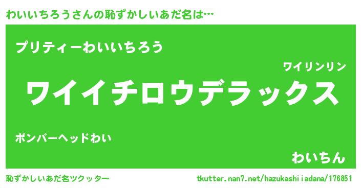 | 男性向けラノベタイトル風あだ名 | 『わいいちろう~年齢イコール彼女いない歴の魔法使い~』 |