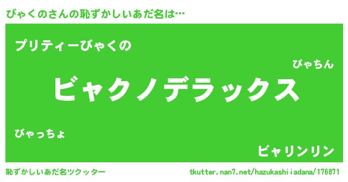 | ヒーロー風カッコイイあだ名 | 『サイバー戦士ビャクノ』『仮面ビャダー』 |