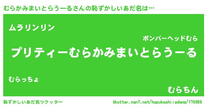 | 男性向けラノベタイトル風あだ名 | 『むらかみまいとらうーるの憂鬱』 |