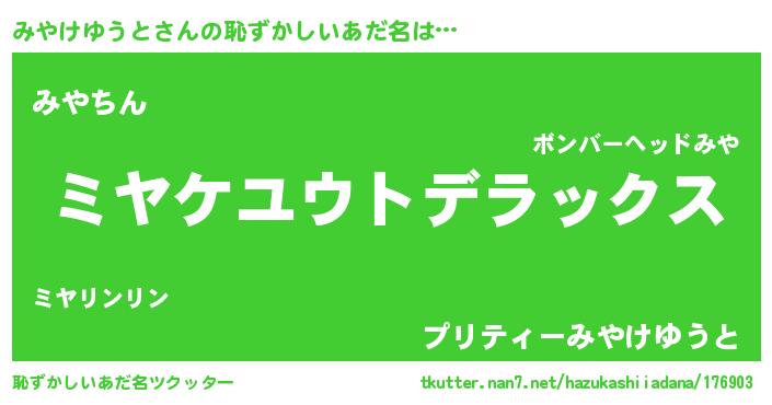 | ヘコむあだ名 | 『みやけゆうと(笑)』『みやにー』 |