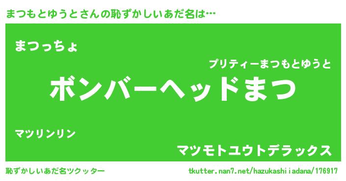| 男性向けラノベタイトル風あだ名 | 『うちのまつもとゆうとが世界を掌握している!』 |