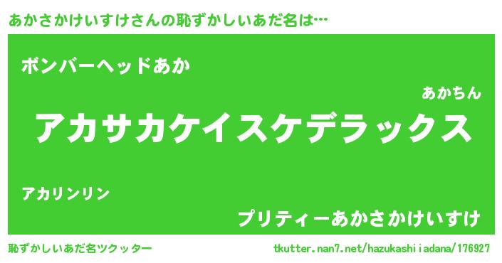| 女子向けラノベタイトル風あだ名 | 『あかさかけいすけなんてお断りですっ。』 |