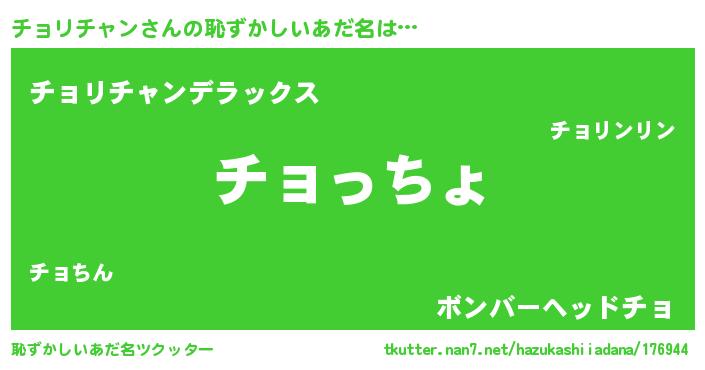 | 意味不明あだ名 | 『住所不定無職チョリチャン(10歳)』 |
