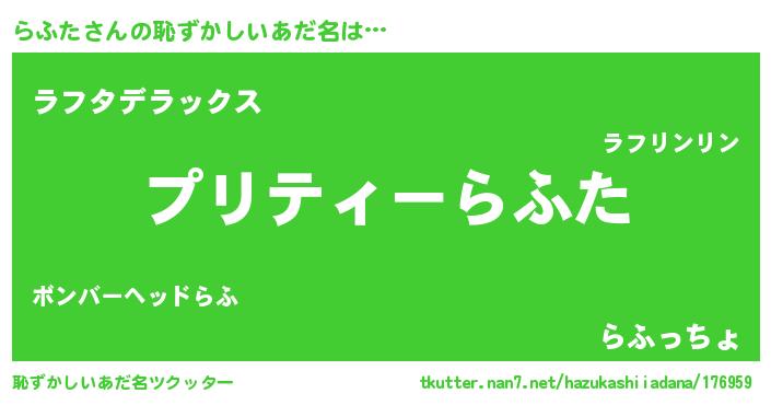 | ポケモン風あだ名 | 『ラフチュウ』『ラフゴンZ』 |