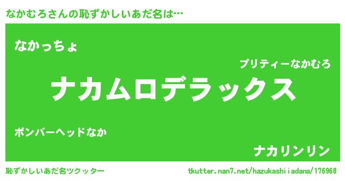 | 男性向けラノベタイトル風あだ名 | 『ナカムロスレイヤー』 |