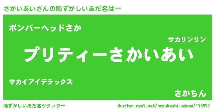| ヒーロー風カッコイイあだ名 | 『スーパーサカイアイ』『仮面サカダー』 |