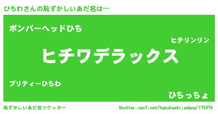 | ヒーロー風カッコイイあだ名 | 『超時空戦士ヒチワ』『慈愛の使者ひちわ』 |