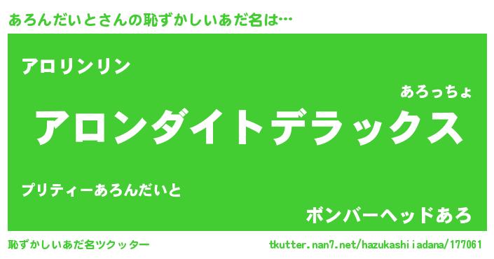 | ヘコむあだ名 | 『あろお』『なまこ酢』『あろにー』 |