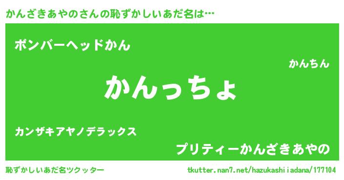 | 男性向けラノベタイトル風あだ名 | 『かんざきあやの~年齢イコール彼女いない歴の魔法使い~』 |