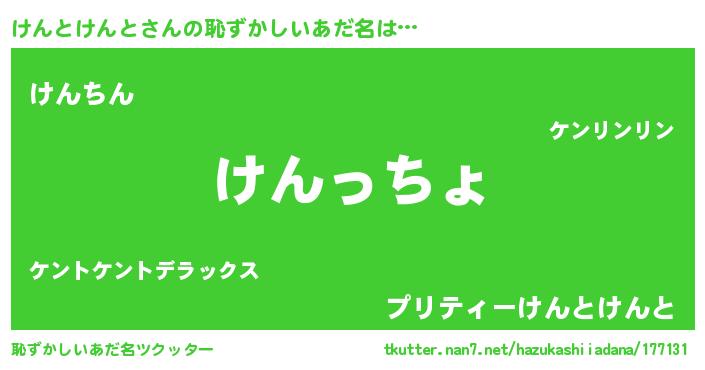 | 意味不明あだ名 | 『住所不定無職けんとけんと(98歳)』 |