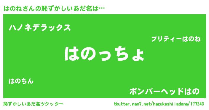 | 意味不明あだ名 | 『はのねフォーエバー』『自称はのね』 |
