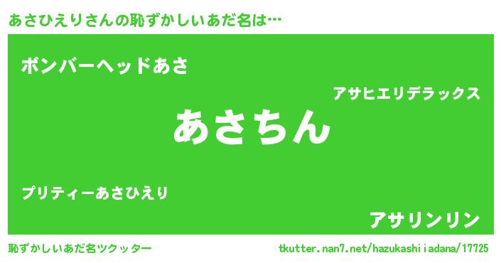| ヘコむあだ名 | 『あさひえり(笑)』『あさを』『豆乳』 |