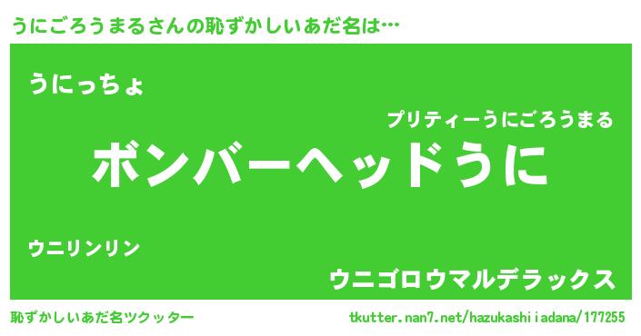 | ヒーロー風カッコイイあだ名 | 『正義の使者うにごろうまる』 |