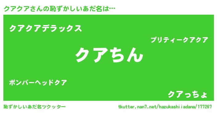 | ヒーロー風カッコイイあだ名 | 『ネオクアクア』『究極戦士クアクア』 |