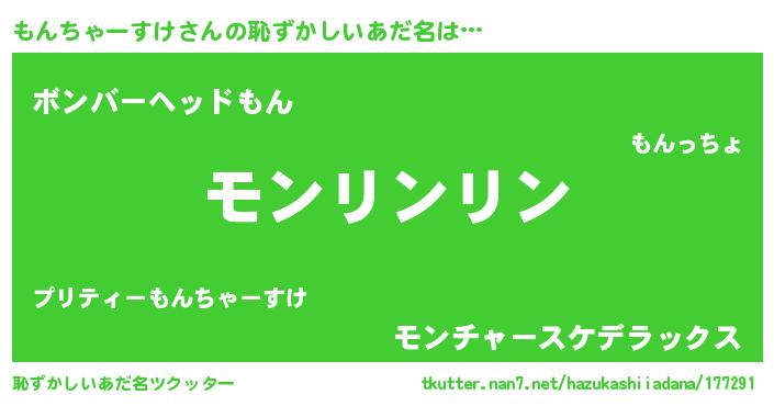 | 女子向けラノベタイトル風あだ名 | 『もんちゃーすけ様がみてる』 |