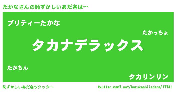 | ヒーロー風カッコイイあだ名 | 『サイバー戦士タカナ』『スーパータカナ』 |