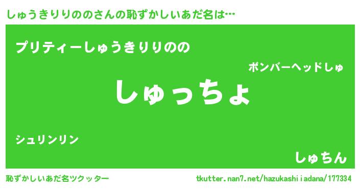 | ヘコむあだ名 | 『豆乳』『しゅにー』『しゅっ子』 |